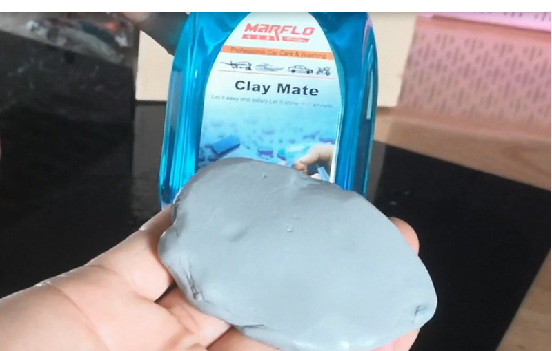 o 在待清洗区域、火山泥表面以及手上均匀喷洒黏土润滑剂或清洗液。这有助于减少火山泥与车漆之间的摩擦,保护车漆不受损伤。