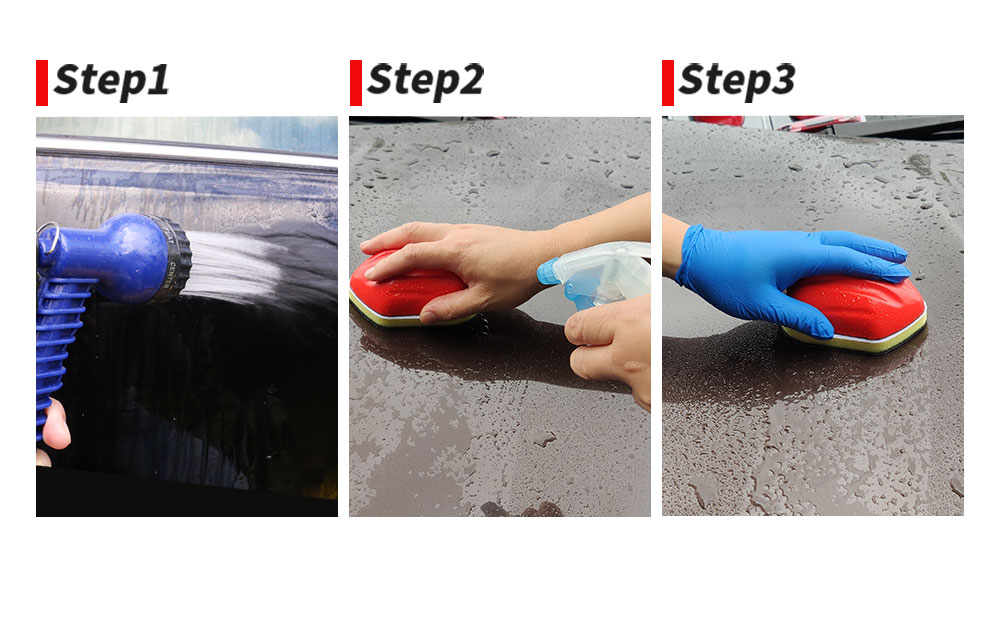 2、喷水或者润滑液:把磨泥海绵擦放水里浸湿,让海绵吸满水,再在车漆上喷水或者润滑液。