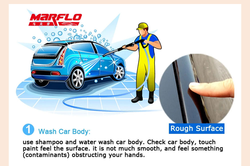 1、清洗车身:用洗车剂和清水清洗车身。检查车身,触摸油漆,感受表面。它不是很光滑,感觉有东西(污染物)挡住了你的手。