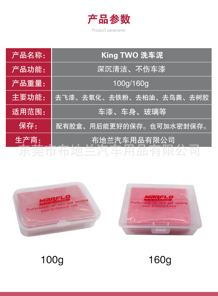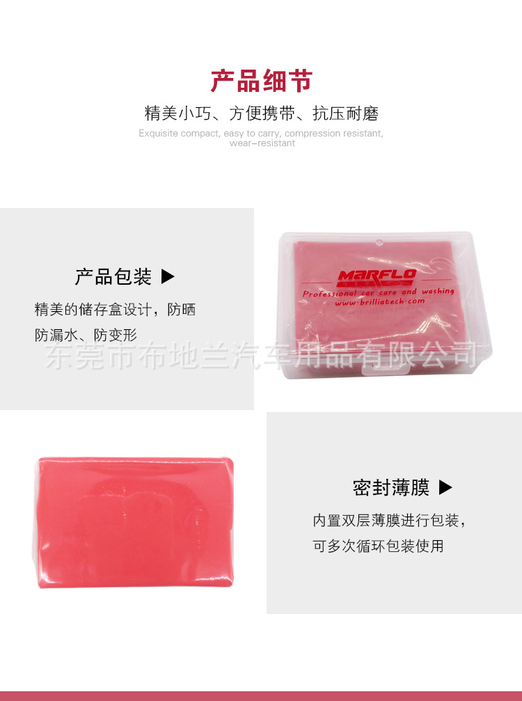品牌:马夫劳 材质:魔泥 重量:100g、150g、160g、 颜色:红色 包装:PP盒 功能:汽车去污、汽车抛光、汽车美容 |