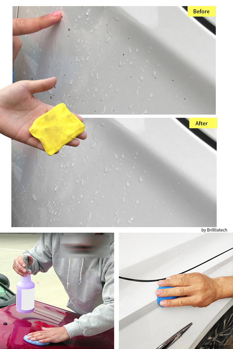 2、用清水或马夫劳润滑清洁液( clay mate )打湿漆面配合洗车泥使用。