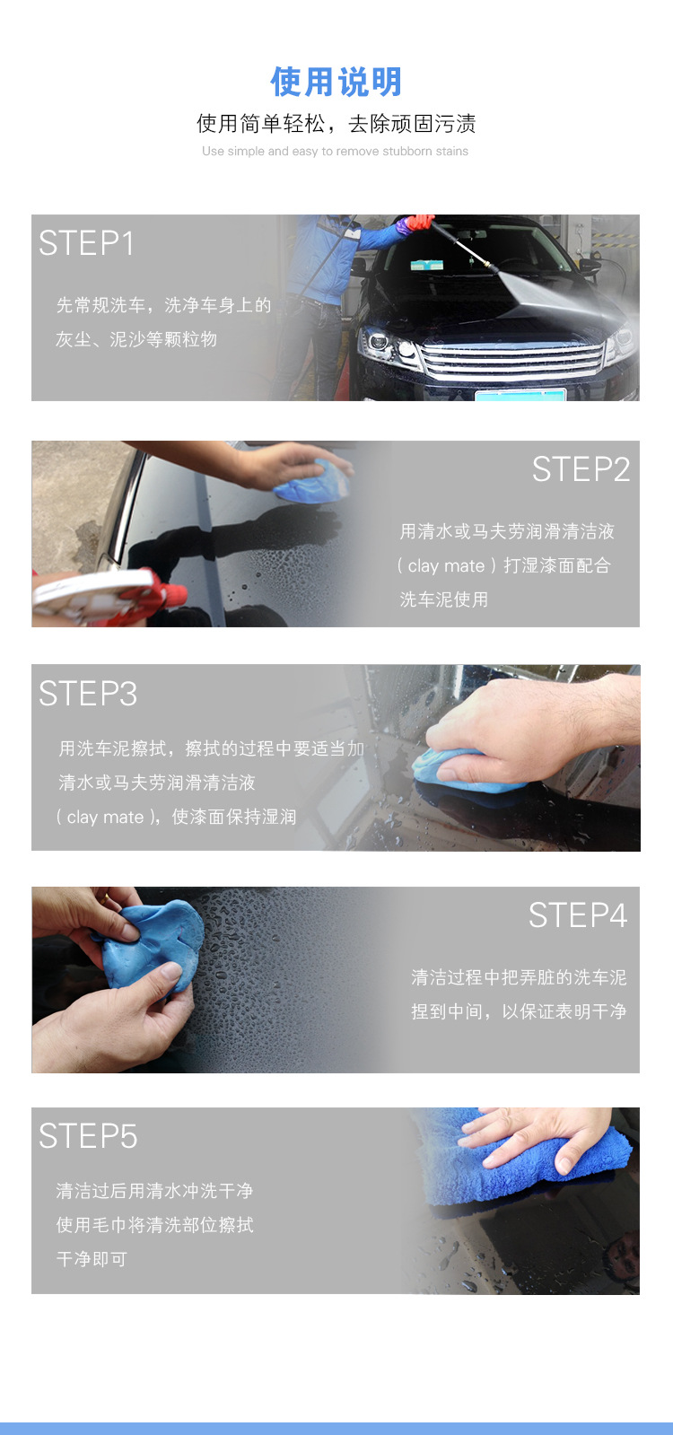 3、用洗车泥擦拭,擦拭的过程中要适当加清水或马夫劳润滑清洁液( clay mate),使漆面保持湿润。