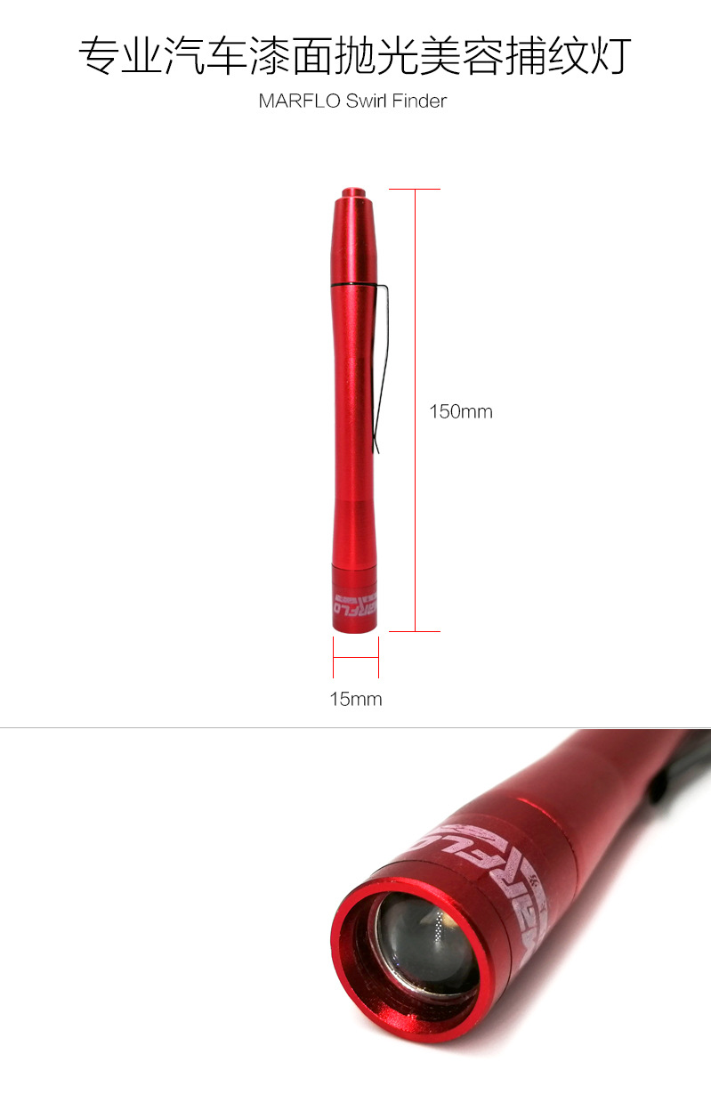 专业汽车漆面抛光美容捕纹灯:5*15cm大小,体积小,一支笔大小,使用轻便。 |