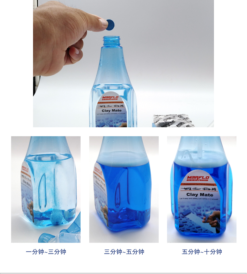 润滑剂泡腾片喷雾瓶套装洗车套件:这个套装包含魔泥去污润滑剂和一个手持式喷雾壶,在使用魔泥系列产品,如魔泥洗车泥,魔泥毛巾,魔泥擦车块时,需要润滑液配合使用。 |