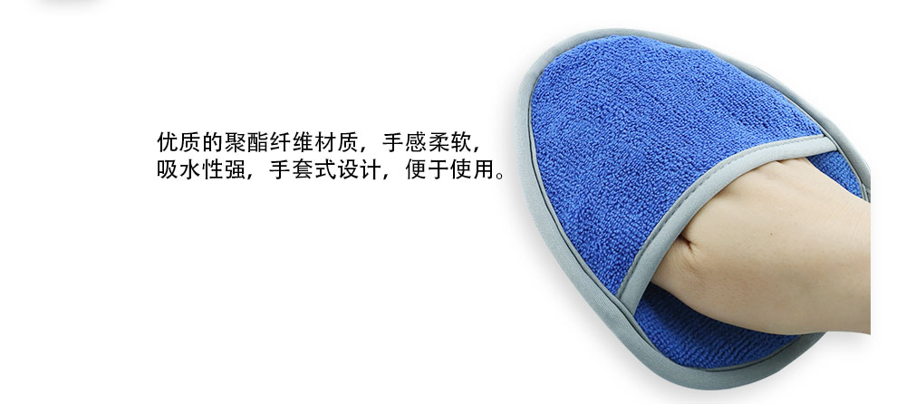 优质的聚酯纤维材质,手感柔软,吸水性强,为魔泥洗车的时候提供足够的水或者润滑液,不怕划伤车漆。手套式的设计,洗车更方便。 |