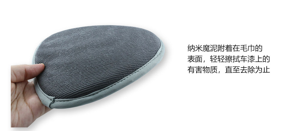 柔软的光滑的魔泥层,采用纳米技术覆盖在毛巾上,不易脱落。把擦车手套和水或者润滑剂配合使用,在车子上轻轻擦拭,达到物理去污的效果,不伤车漆,是爱车人士的青睐的洗车用品。 |
