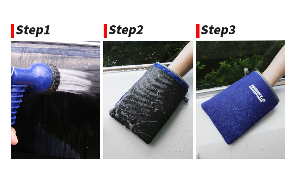 洗车步骤:1、用水把车身打湿 2、把水或者润滑液喷在擦车手套上和车身上,使擦车手套和车 身足够湿滑。 3、擦洗车身直至污渍擦洗干净,再用水把车子上的污渍和泡沫冲洗 干净为止。 |