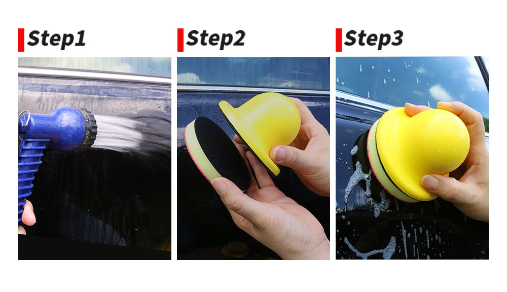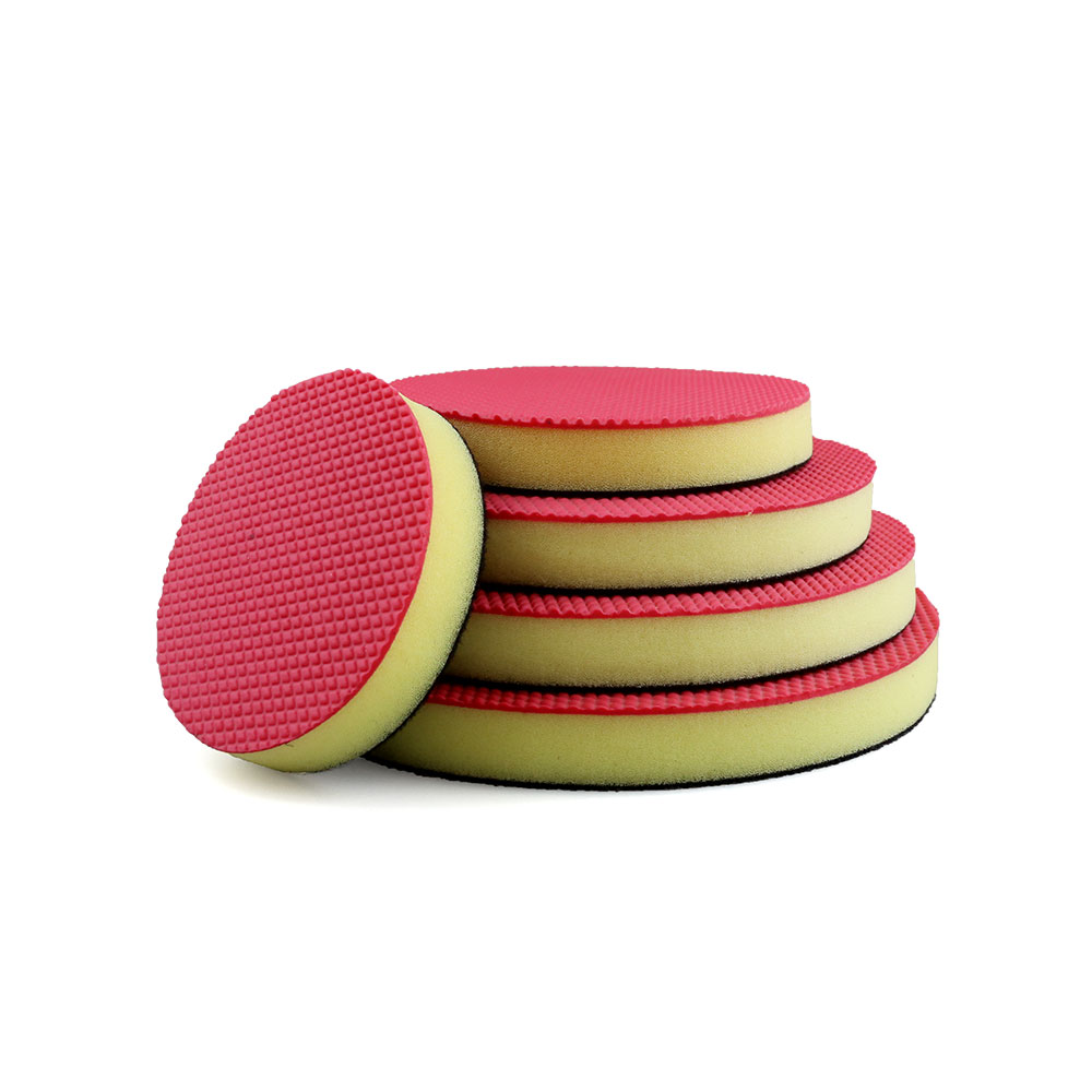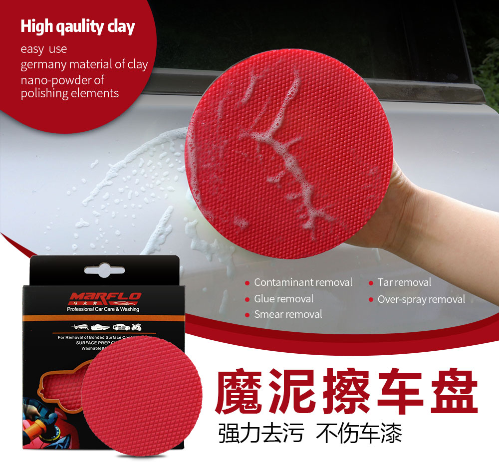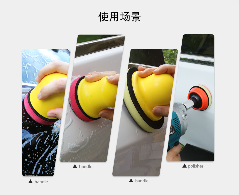 这款魔泥擦车盘,一面是纳米魔泥附着在海绵上,一面是魔术贴。这样可以魔泥擦车盘直接黏贴在抛光机或者手抓柄上,非常方便使用。
