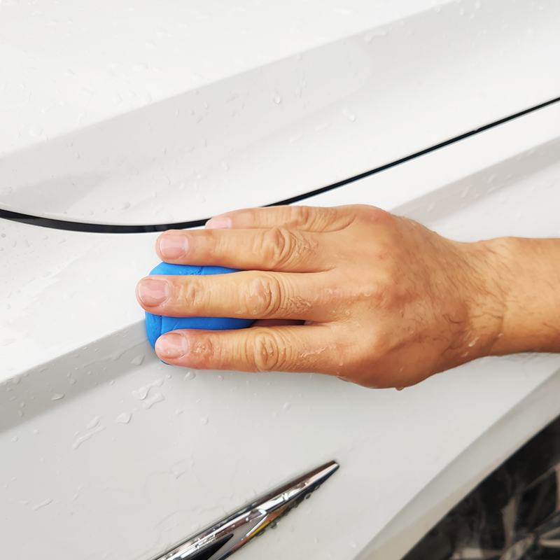 2、用清水或马夫劳润滑清洁液( clay mate )打湿漆面配合洗车泥使用。