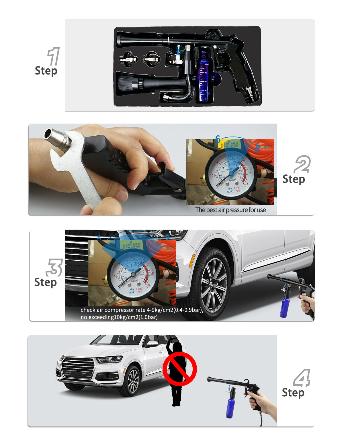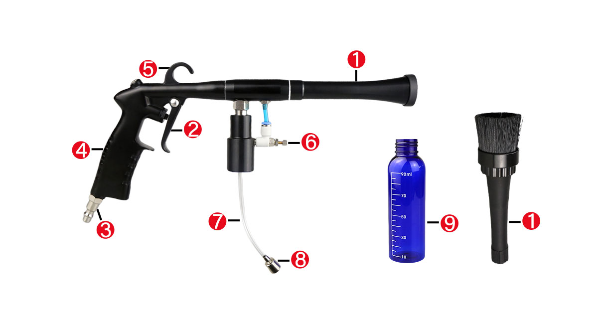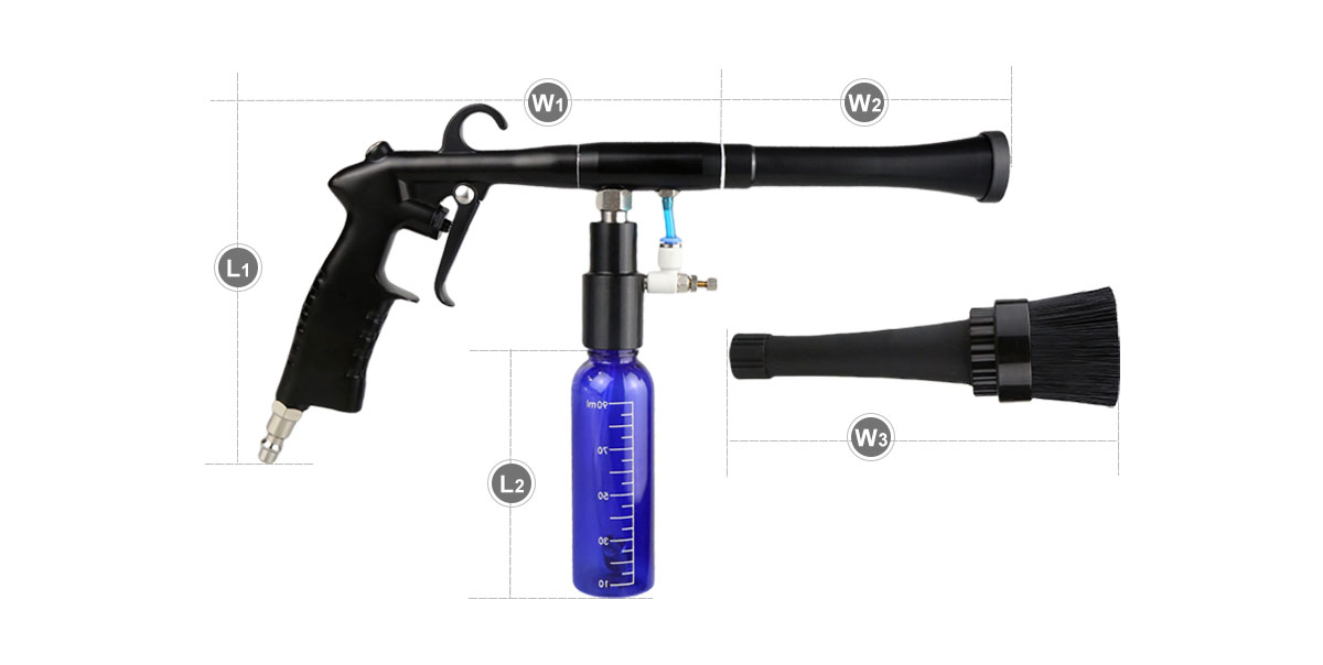 这款汽车美容雾化气喷枪,采用高品质铝合金材质,经过先进的锻造工艺,防腐蚀防水,经久耐用。不仅可以清洁车内饰,车顶,车轮子,车窗等各种场景,可满足车辆内外多种清洁需求,汽车清洁无死角。