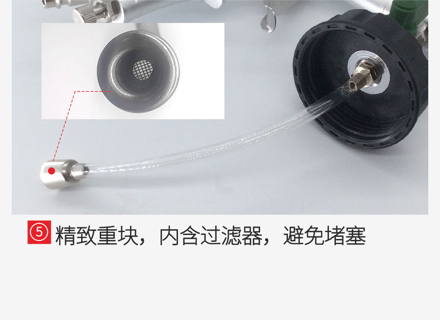 5、精致液体过滤头,内含有过滤器,避免堵塞。 |