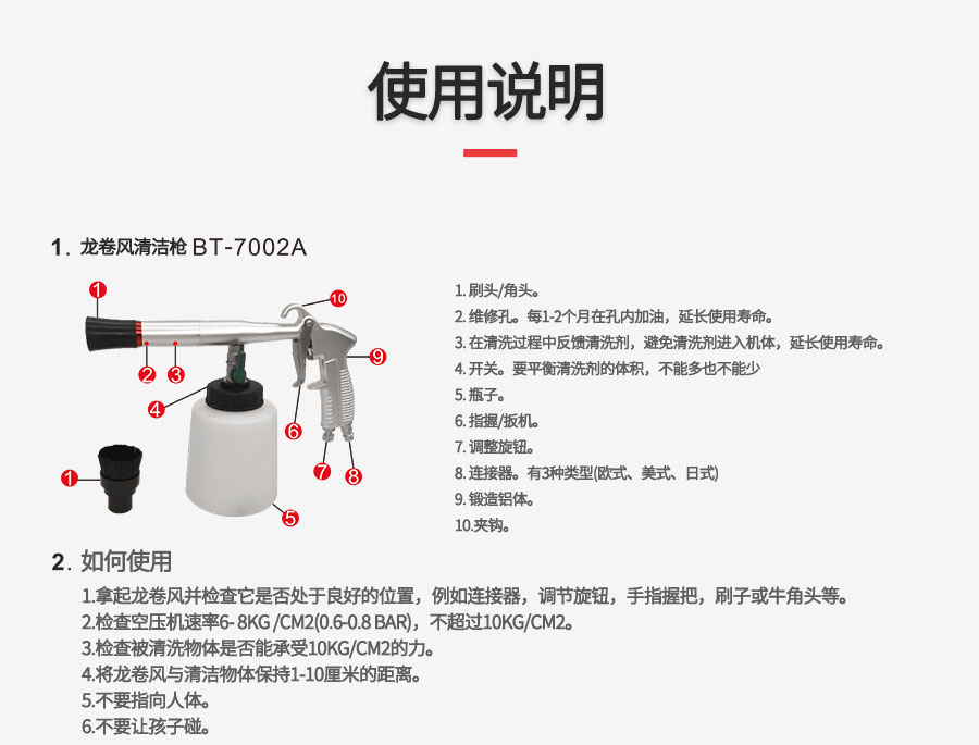 洗车除尘枪的特点:1、白色保护层,延长使用时间 |