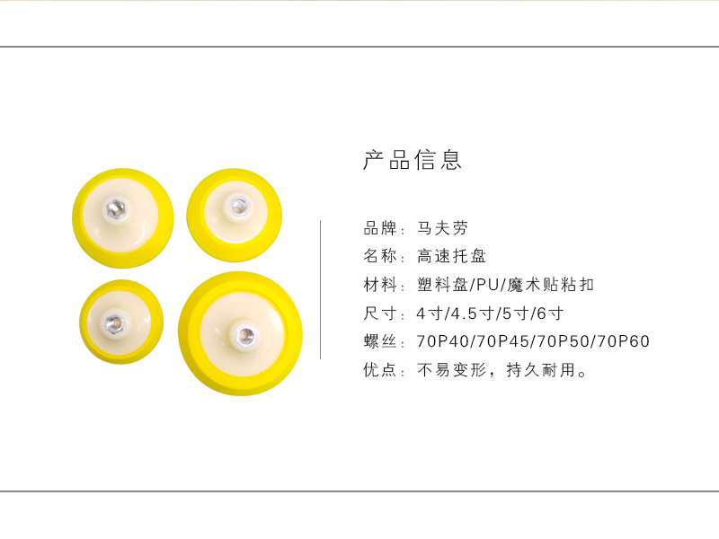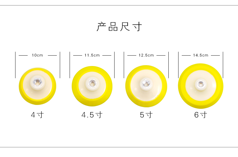 4寸、4.5寸、5寸、6寸。适应大部分抛光机尺寸。