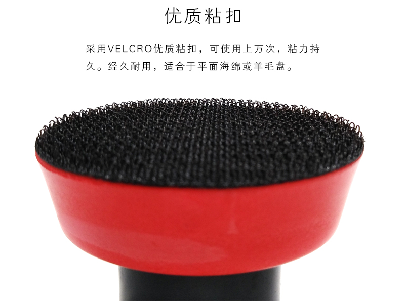 优质粘扣:1、采用VELCRO优质粘扣,可使用上万次,粘力持久。经久耐用。适合于平面海绵盘或羊毛盘。 |