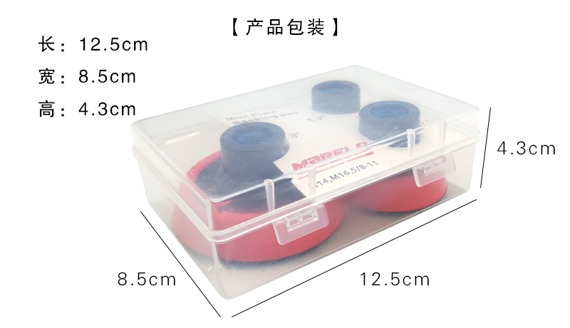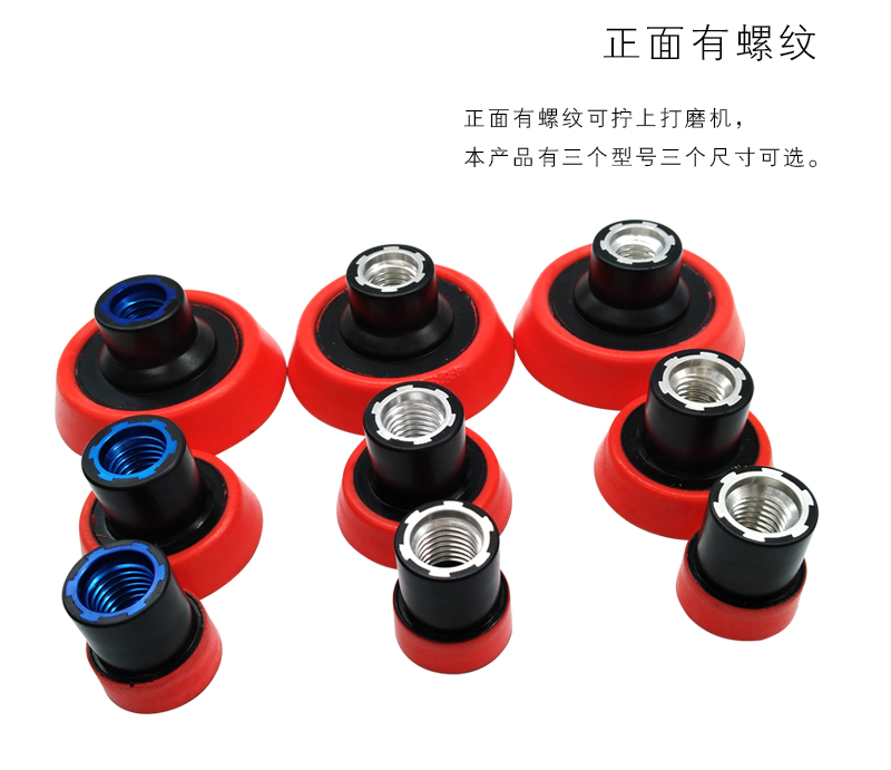 这是一款抛光机抛光小背板套装,一个PP盒里同种螺纹三个尺寸,包含1.2寸、2寸、3寸,总共有三种螺纹。小抛光机背板,柔软且强韧耐用,缓冲效果好,用于精细的汽车抛光打磨,或者大抛光盘难以进入的缝隙,如车门把手、车轮等。