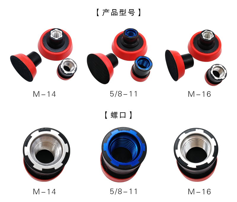 这款抛光机抛光背板套装有三种螺纹,M14、M16、5/8-11。每个PP盒种一种螺纹,不同尺寸,如1.2寸、2寸、3寸。客户可以根据自己的需求购买。 |
