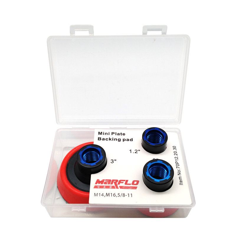 这是一款抛光机抛光小背板套装,一个PP盒里同种螺纹三个尺寸,包含1.2寸、2寸、3寸,总共有三种螺纹。小抛光机背板,柔软且强韧耐用,缓冲效果好,用于精细的汽车抛光打磨,或者大抛光盘难以进入的缝隙,如车门把手、车轮等。 |