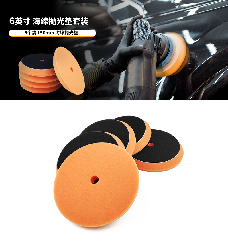 6寸海绵抛光盘:这是款5个6寸汽车抛光盘套装,经济实惠,使用更长久。 |