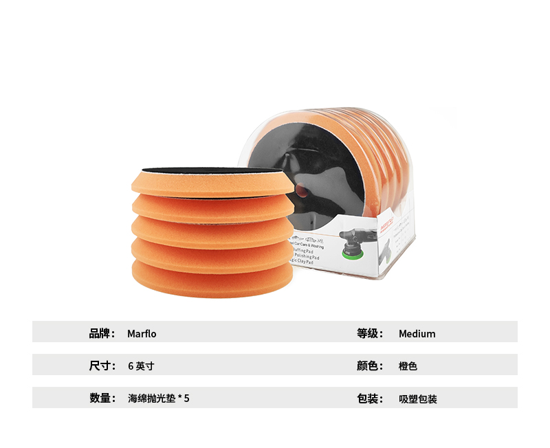 品牌:马夫劳 材质:海绵 尺寸:15cm(6寸) 颜色:橘色 数量:5个 包装:吸塑包装 功能:汽车美容、汽车抛光、汽车打磨 |