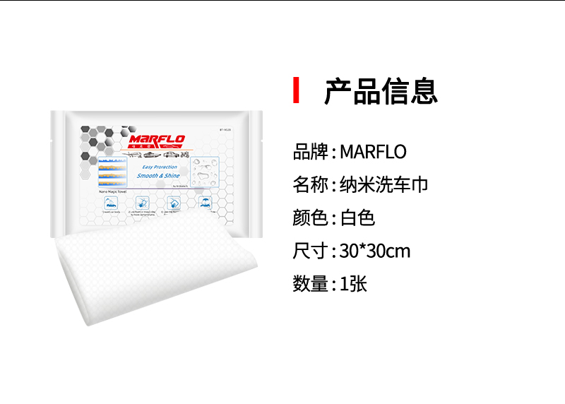 品牌:马夫劳 材质:纳米 尺寸:30*30cm 颜色:白色 包装:吸塑包装 功能:汽车清洁、汽车去污、汽车美容 |