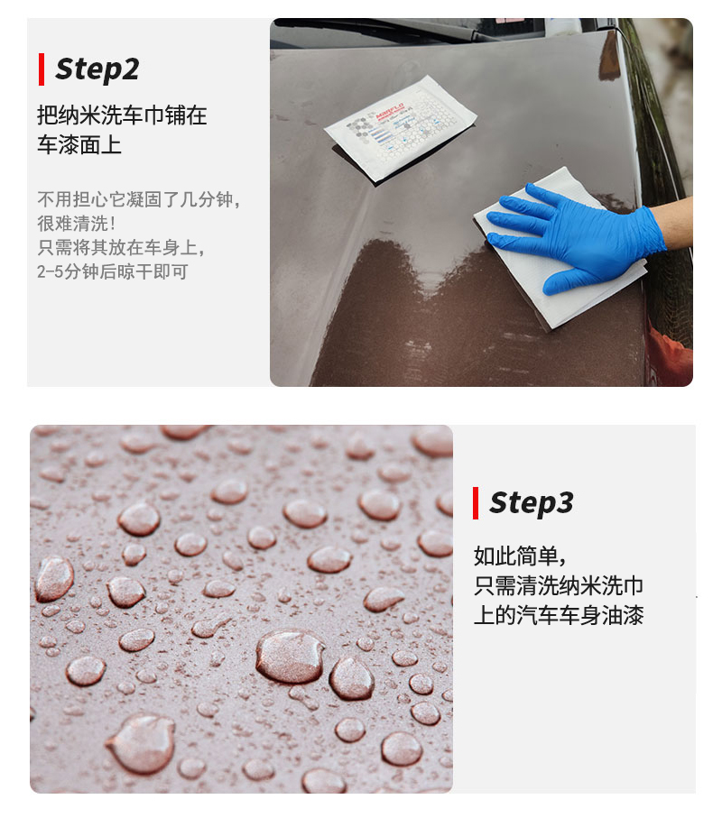 如何使用纳米洗车巾:1、常规清洗车身:最好是在涂用前使用魔泥系列产品清洗汽车油漆。 2、把纳米洗车巾铺在车漆面上:不用担心它凝固了几分钟,很难清洗!2-5分钟后晾干即可只需将其放在车身上。 3、如此简单,只需要用纳米洗车巾清洗车漆上的污渍。 |