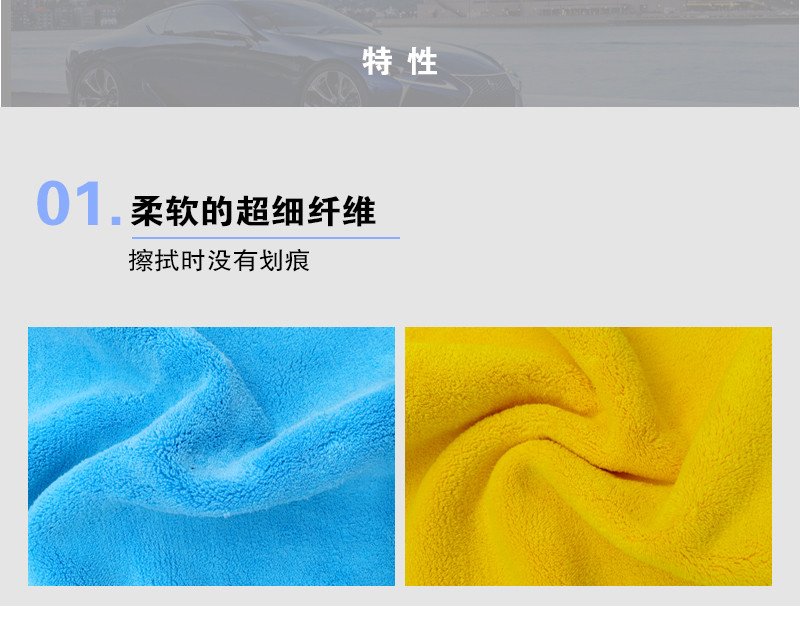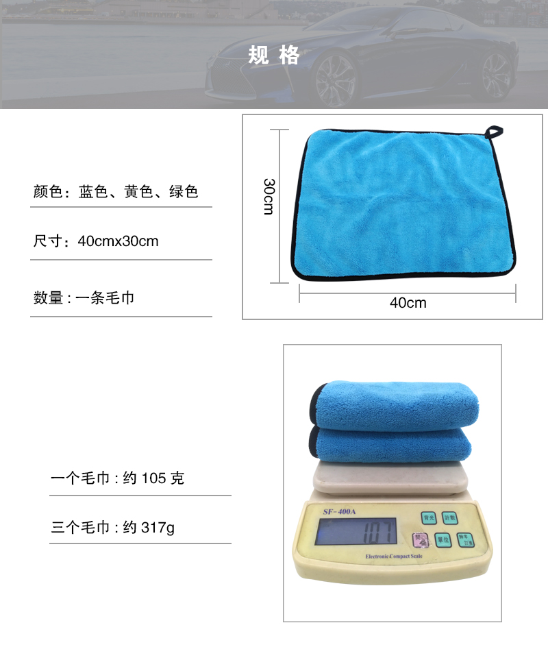 双层擦车超细纤维,超厚毛巾,吸水性增强,洗车更省力。