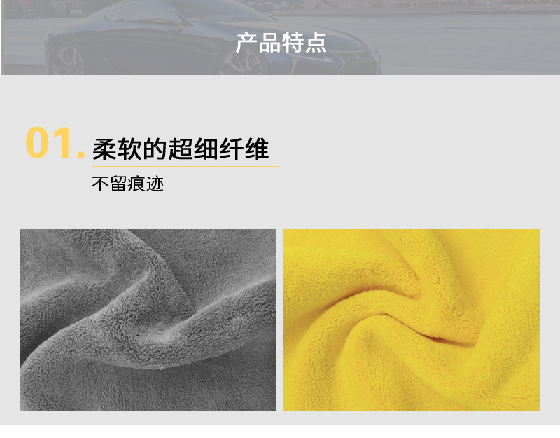 双层擦车超细纤维,超厚毛巾,吸水性增强,洗车更省力。