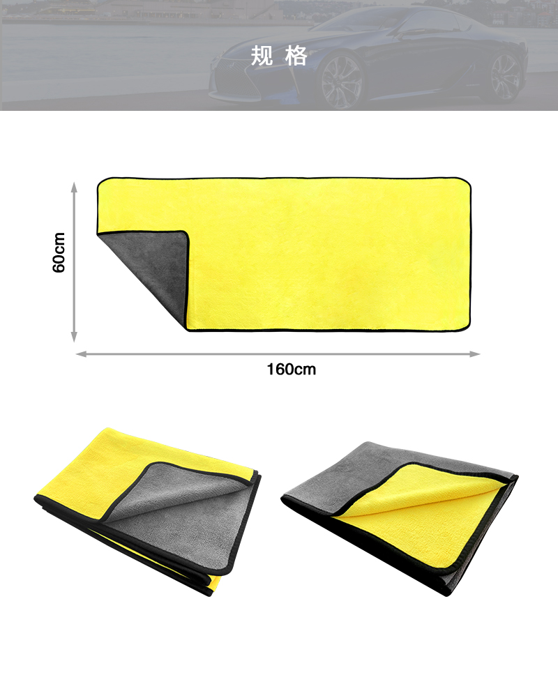 这款洗车抹布60*160cm,适合用来擦拭整车车漆,一次性可擦全车漆,方便高效。