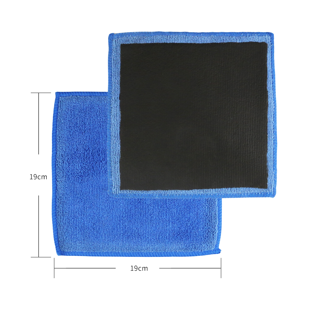 这款是个小尺寸的魔泥擦车布,19*19cm,蓝色的超细纤维材质,吸水性强,短毛不沾污渍,不易划伤车漆。魔泥的去污能力强,依靠魔泥的物理去污能力去除污渍,是一款环保的汽车美容神器。